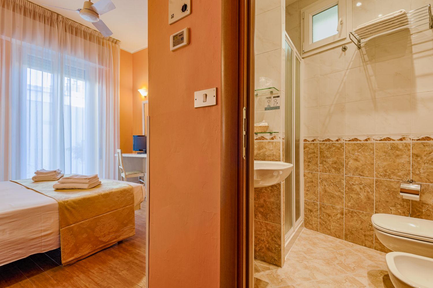 Modern eingerichtete und klimatisierte Zimmer, ausgestattet mit eigenem Bad mit Duschkabine, Haartrockner, Deckenventilator, Satelliten-TV, Direktwahltelefon und Safe. Alle Zimmer dieses Hotels verfügen über kostenloses WLAN, einige bieten zudem einen Balkon.