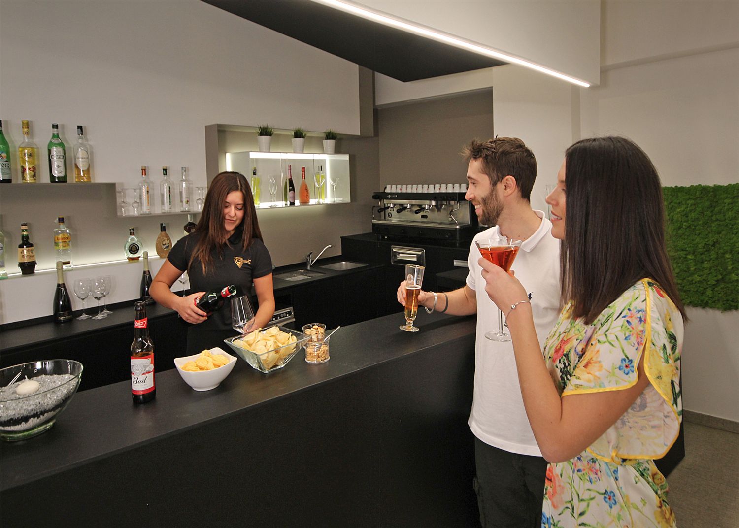 Executive-Zweizimmerwohnung (2. Etage): 50 m² große Wohnung mit Bad und 2 Balkonen, auf zwei Ebenen verteilt mit einer Wendeltreppe, die oben und unten mit Toren ausgestattet ist. Der Schlafbereich besteht aus einem Doppelbett mit einem 3. und 4. Einzelbett, im Wohnbereich einem Doppelschlafsofa, das sich öffnen und schließen lässt. Vom Schlafbereich unabhängige Klimaanlage, ausgestattete Küche, Badezimmer mit Haartrockner und Dusche mit Hydromassagesäule.