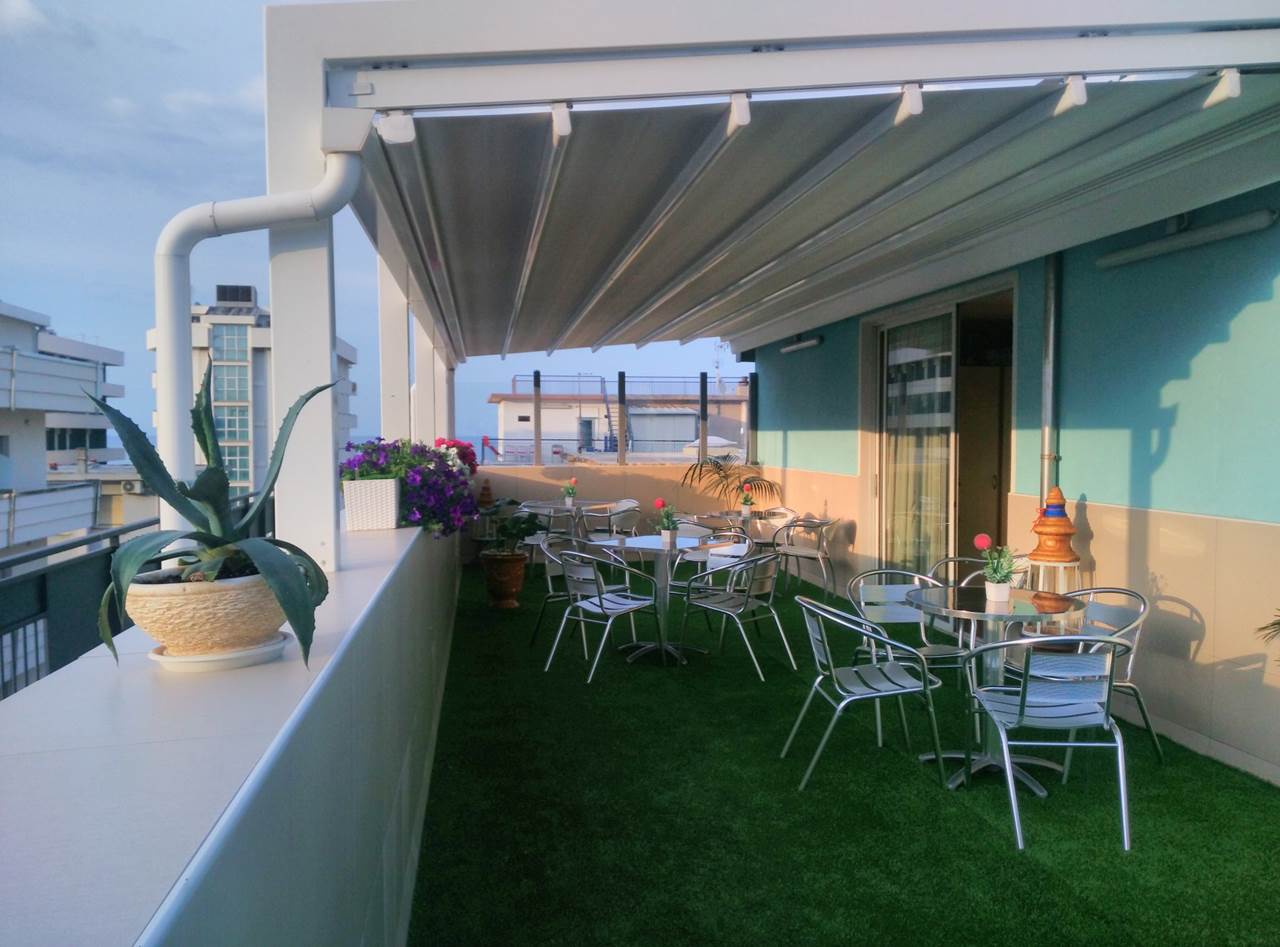 The beach, just a 2-minute walk away, and the panoramic solarium terrace are ideal places to sunbathe and take a refreshing break during the day.