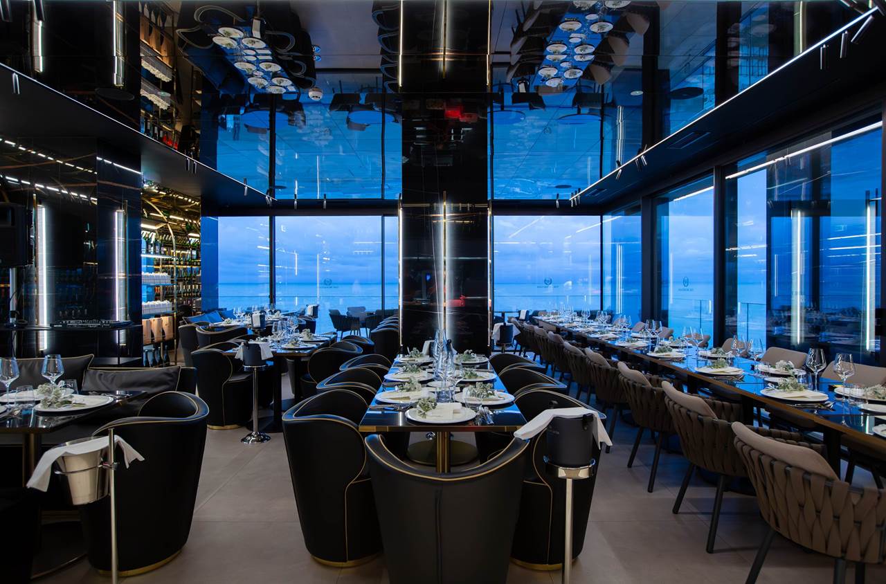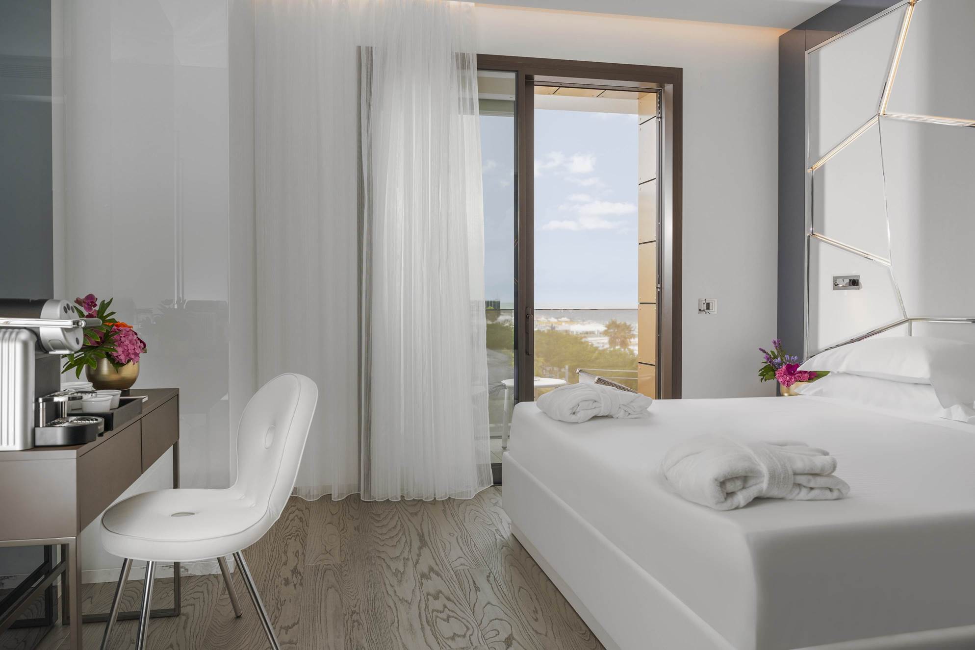 All accommodations have balconies or terraces with floor-to-ceiling windows, offering a sea view and filling the interiors with natural light.