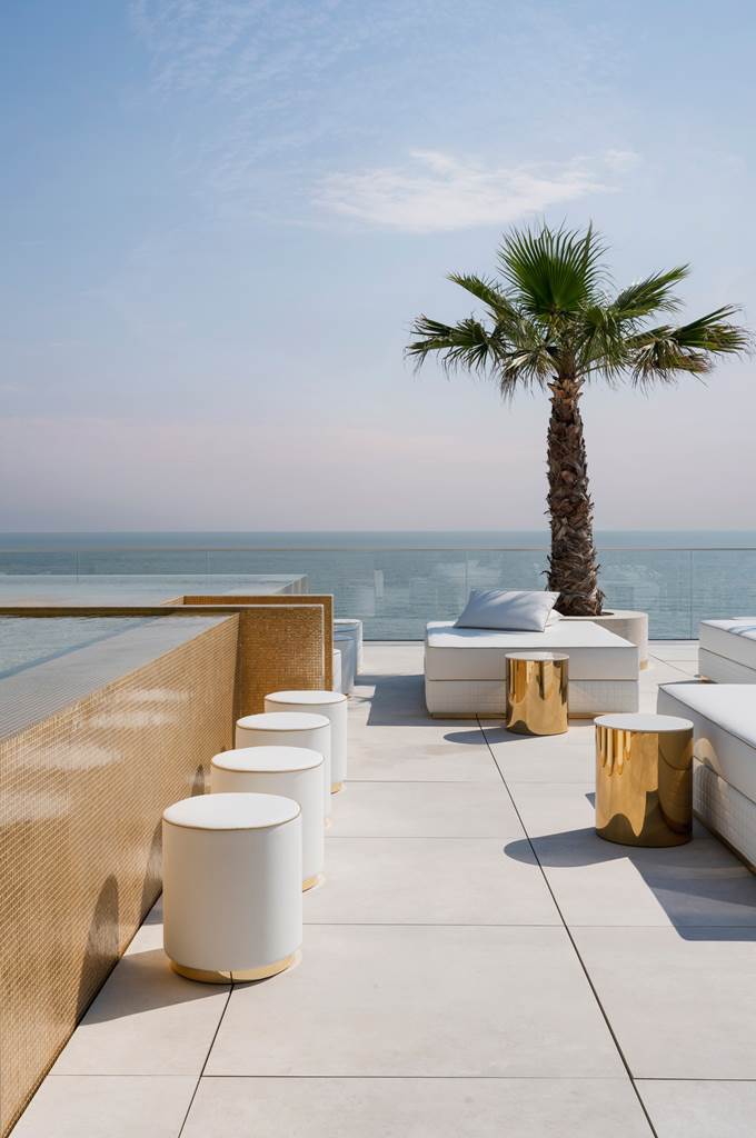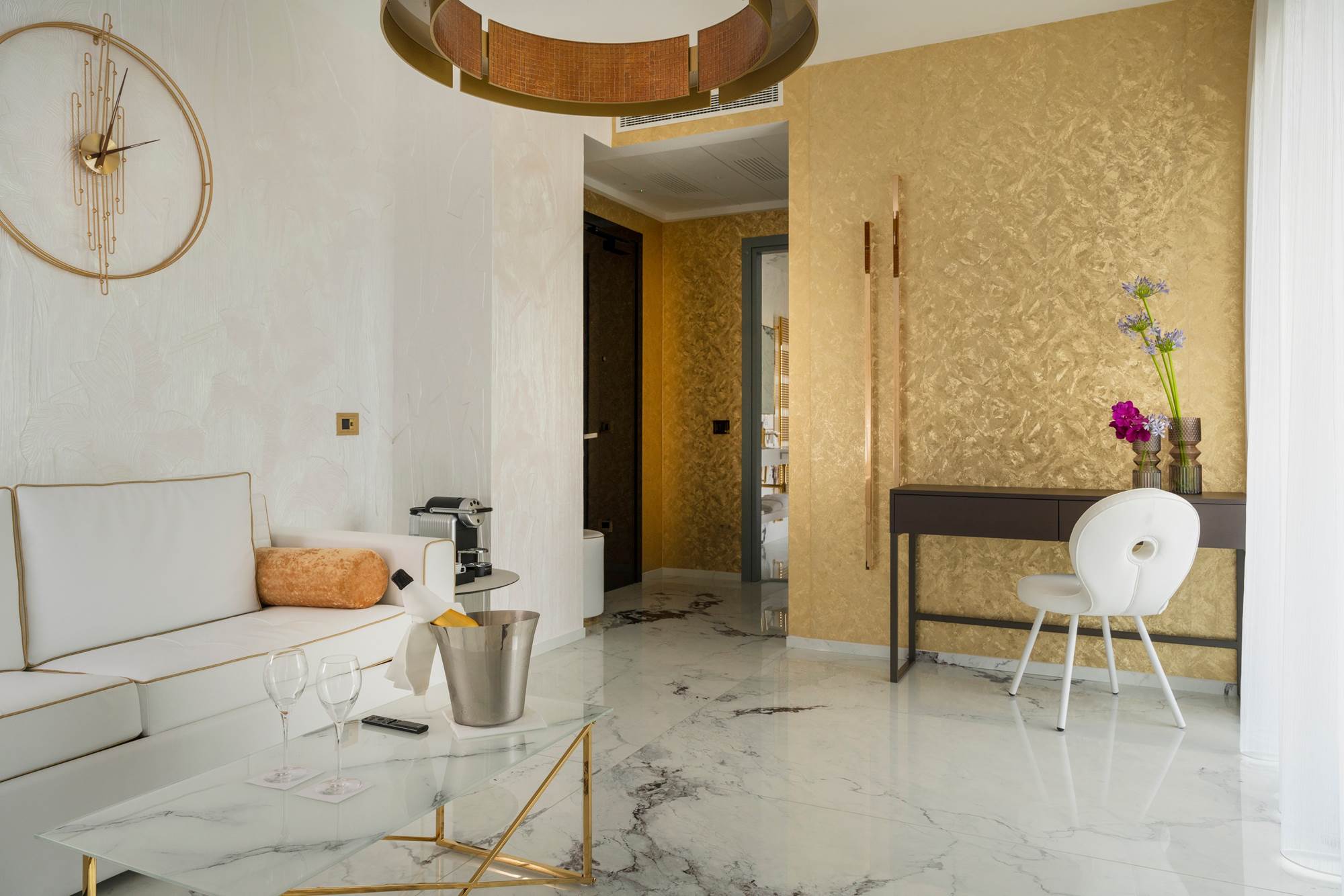 A new luxurious building reshapes the skyline of Riccione, standing out along the seafront of the Riviera with its golden geometric facade. At The Promenade Luxury Wellness Hotel, you will be welcomed by a highly qualified staff, consistently present yet discreet, ensuring that your stay in Riccione will be unforgettable. For those arriving in this corner of Romagna, filled with the vibrant energy of the seaside, Riccione is the ideal destination. Spend a day by the sea, refreshing yourself from the summer heat and sipping a drink during the golden hour, with the scent of the sea blending with the beauty of the surrounding landscape. The Promenade Luxury is an example of energy efficiency in hospitality, able to meet part of its energy needs through renewable energy sources.