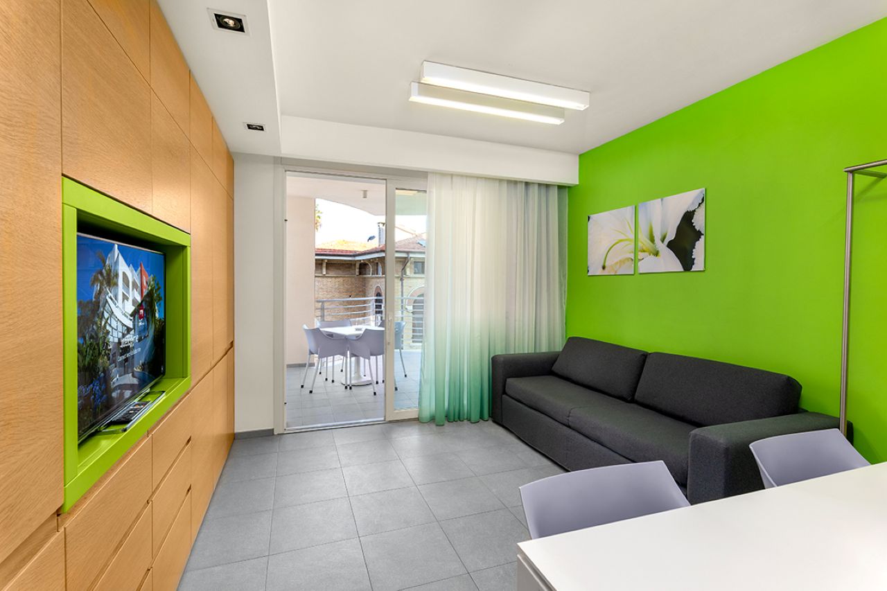 ONE-BEDROOM SUITE: an ideal option for those who wish to enjoy their stay in a spacious and functional setting. With 30 square meters, it offers the comfort of a small apartment, featuring a double bedroom and a living area with kitchen.