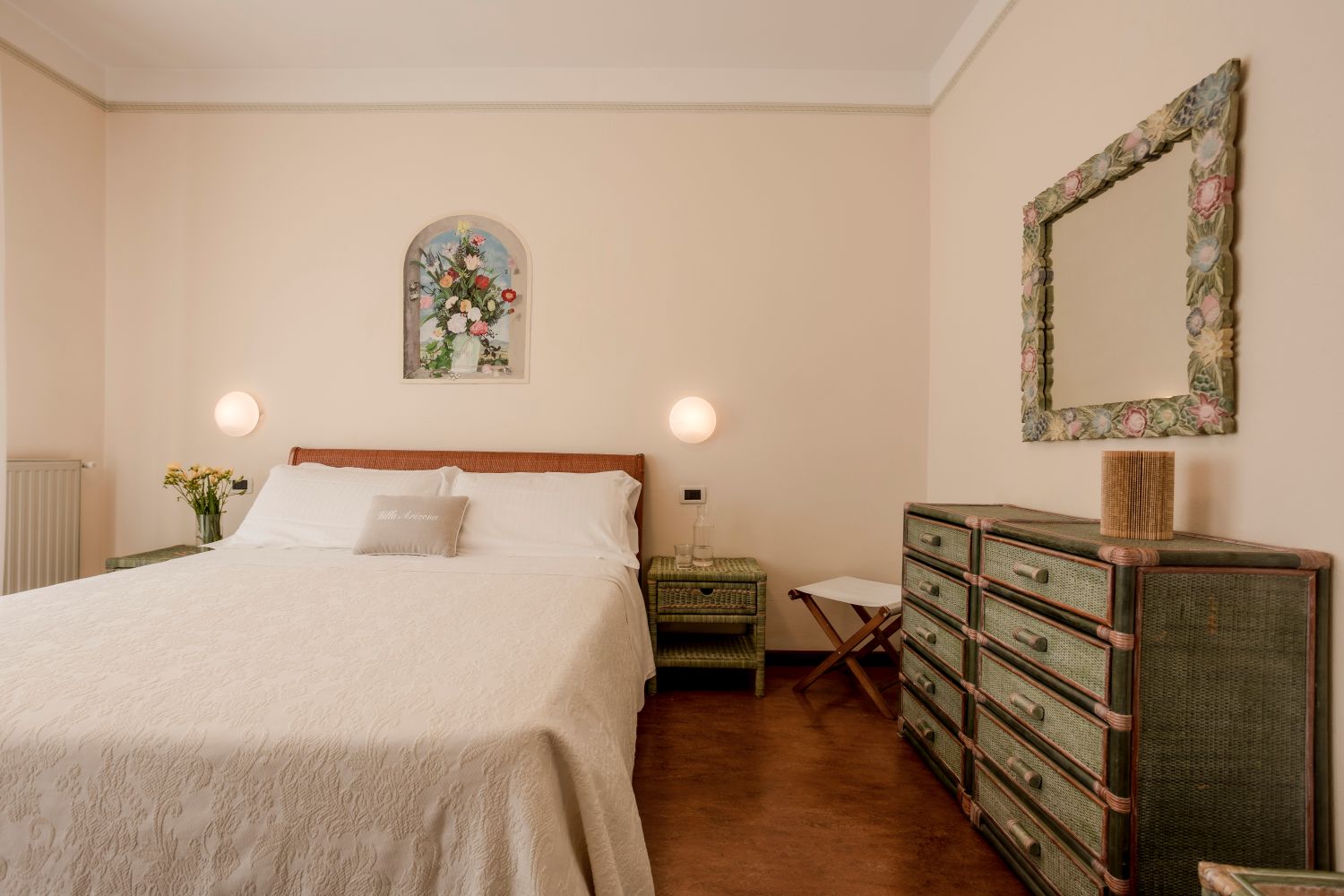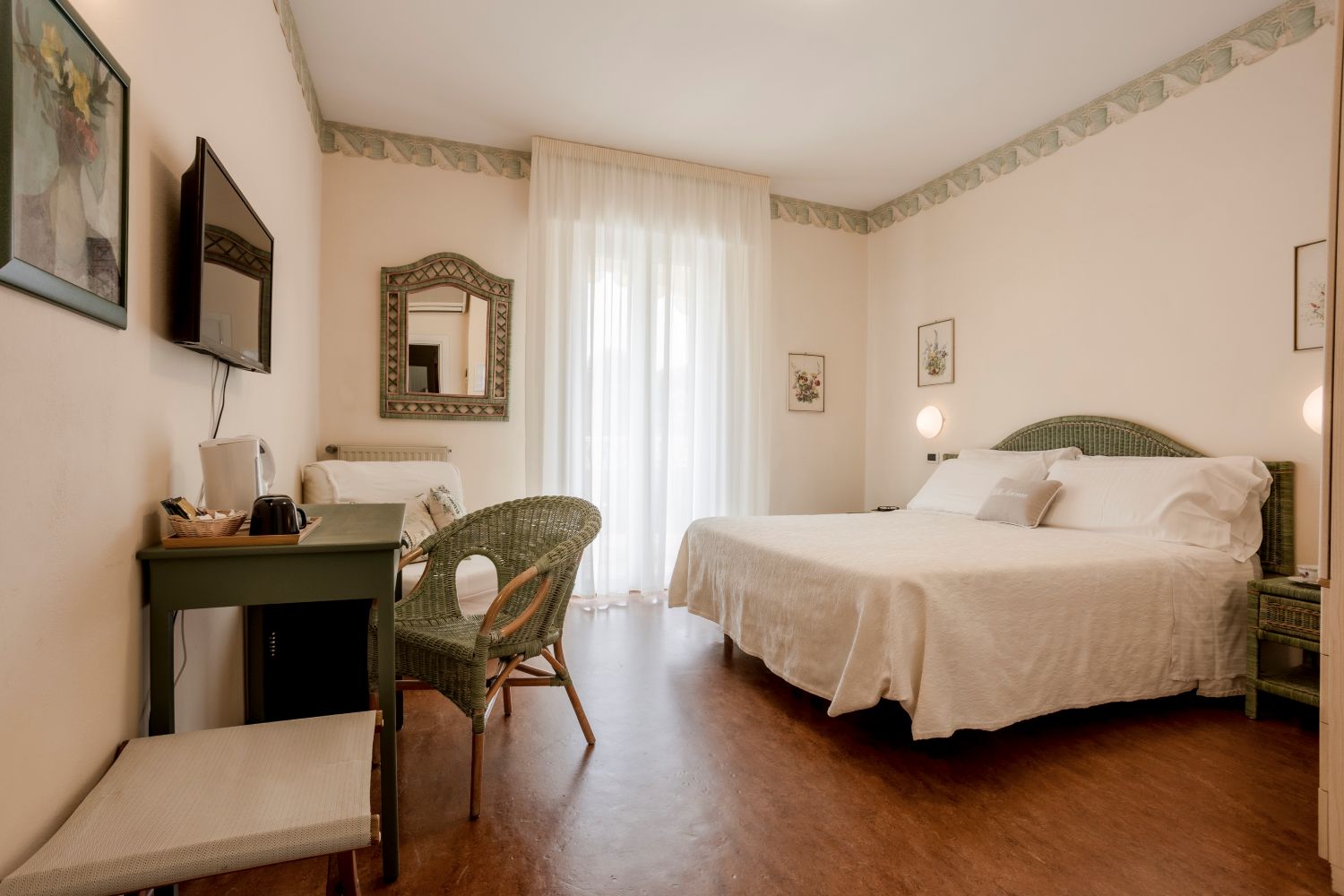 Superior Double Rooms: The Superior rooms, located on the second floor, offer a splendid view of the garden and a refined, relaxing environment. The wisteria climbing on the balcony and the scent of jasmine enhance the stay, making this room ideal for those seeking an unforgettable and peaceful experience.