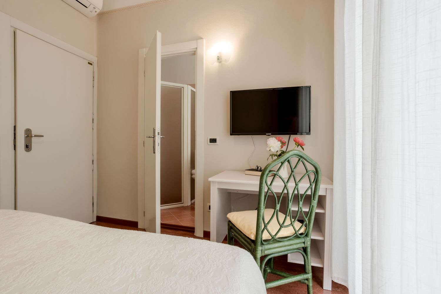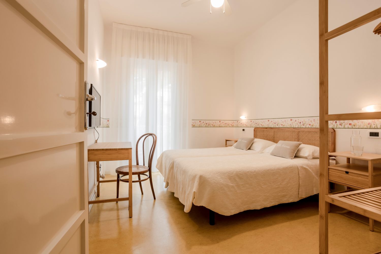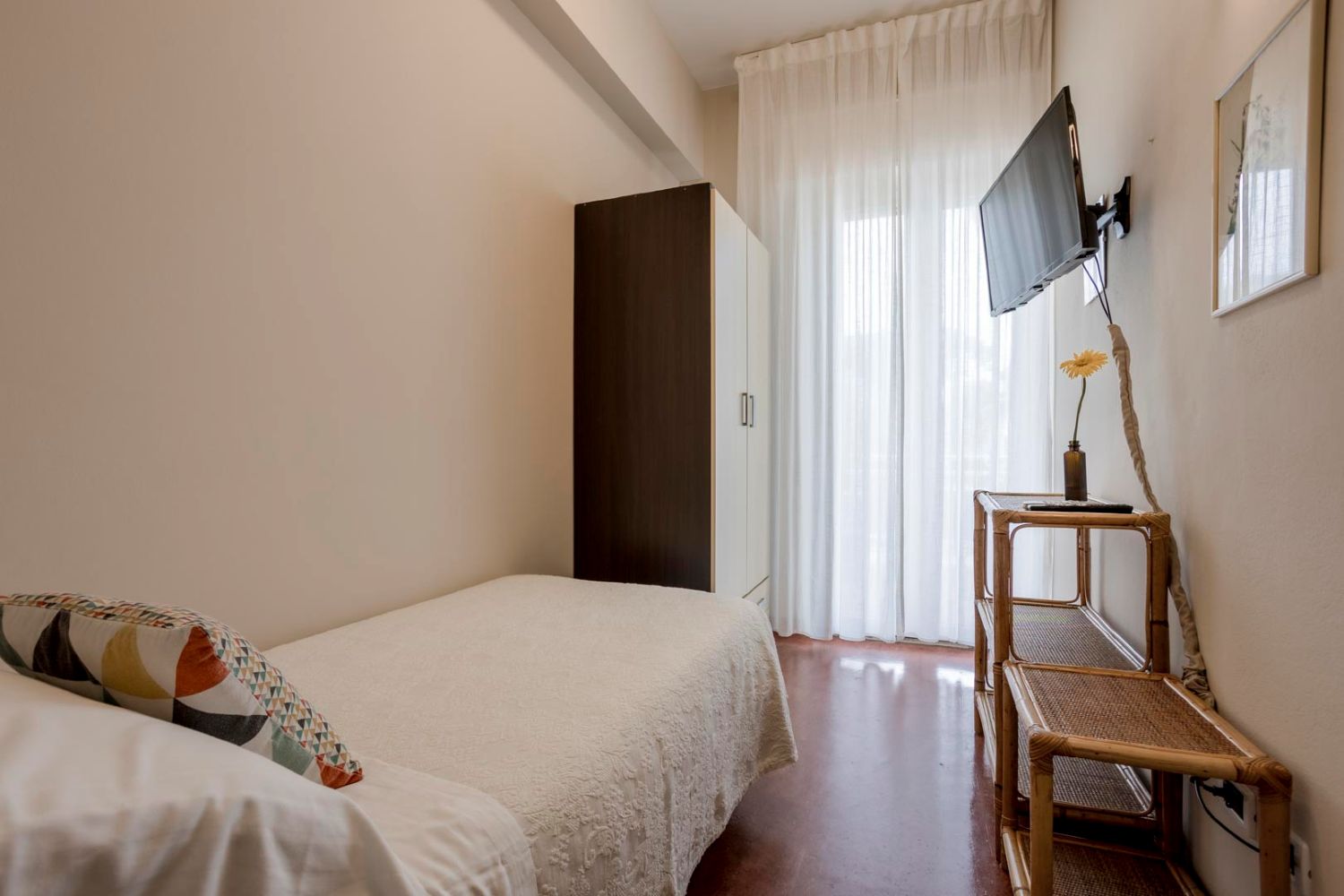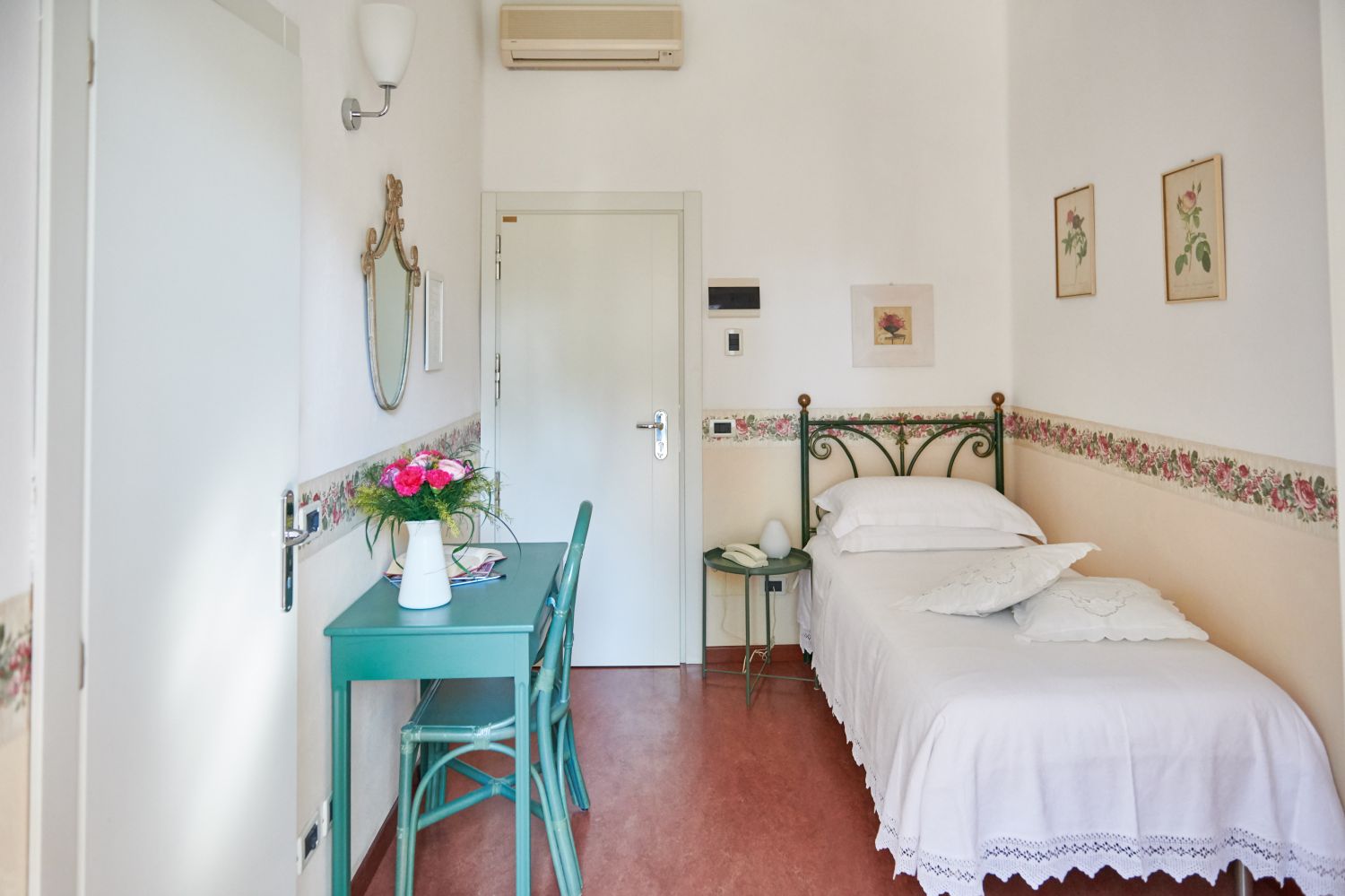 Single Rooms: The single rooms are cozy, simple, and intimate, perfect for those seeking a peaceful and relaxing retreat. Bathed in natural light and surrounded by greenery, they offer maximum privacy and comfort, also ideal for a professional on a business trip.