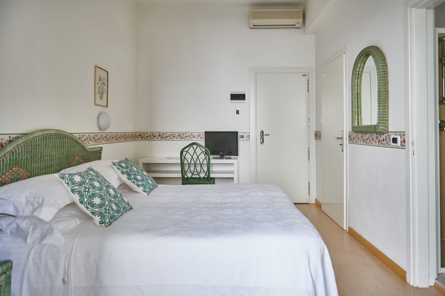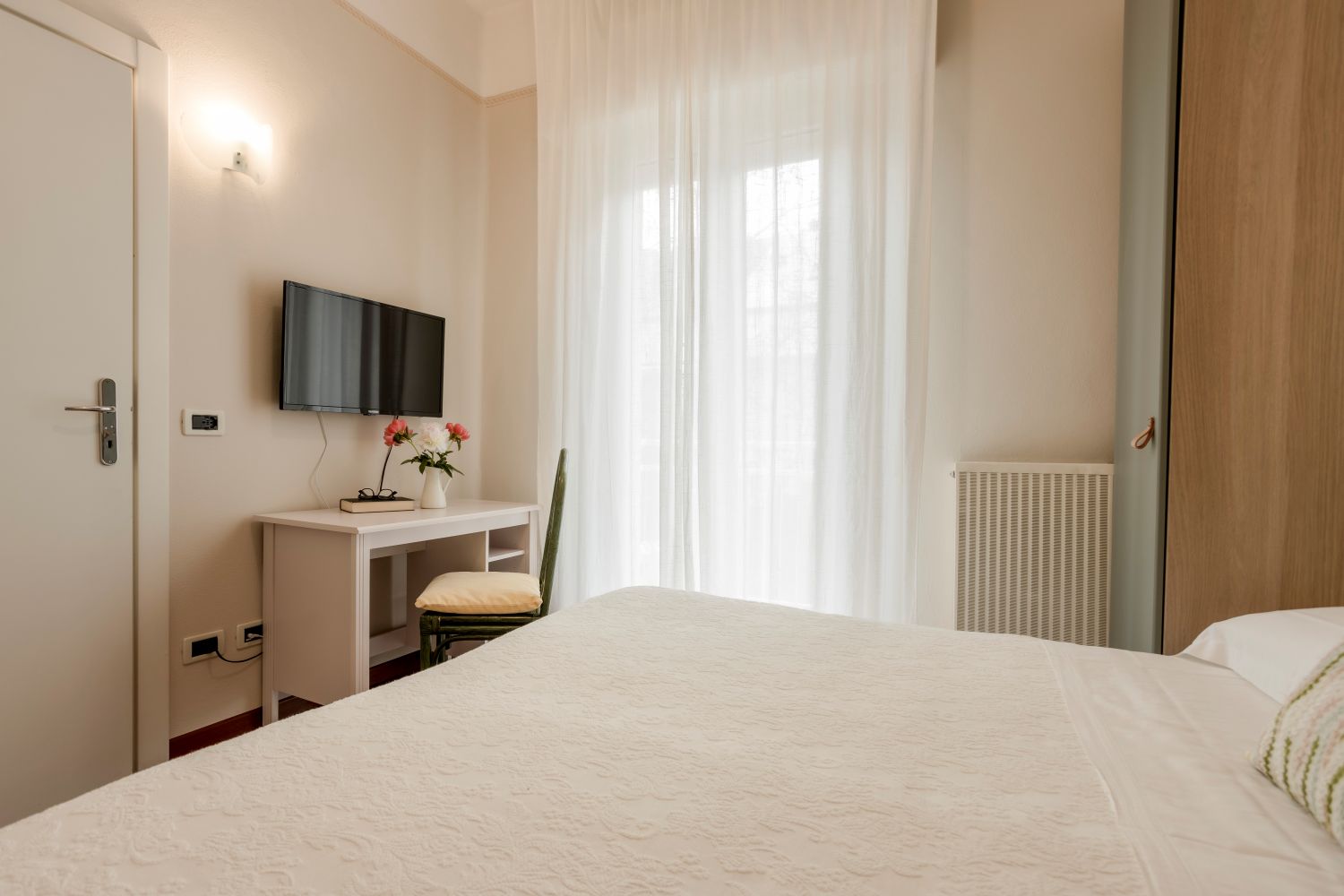 Economy Double Rooms: The Economy double rooms are designed for those who desire serenity and relaxation without giving up comfort, but at a more affordable price. These rooms are smaller in size and come with a built-in wardrobe to optimize space.