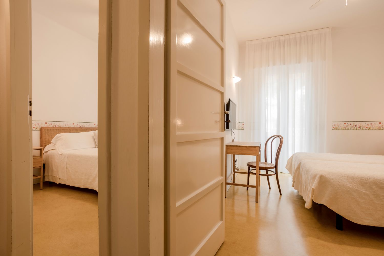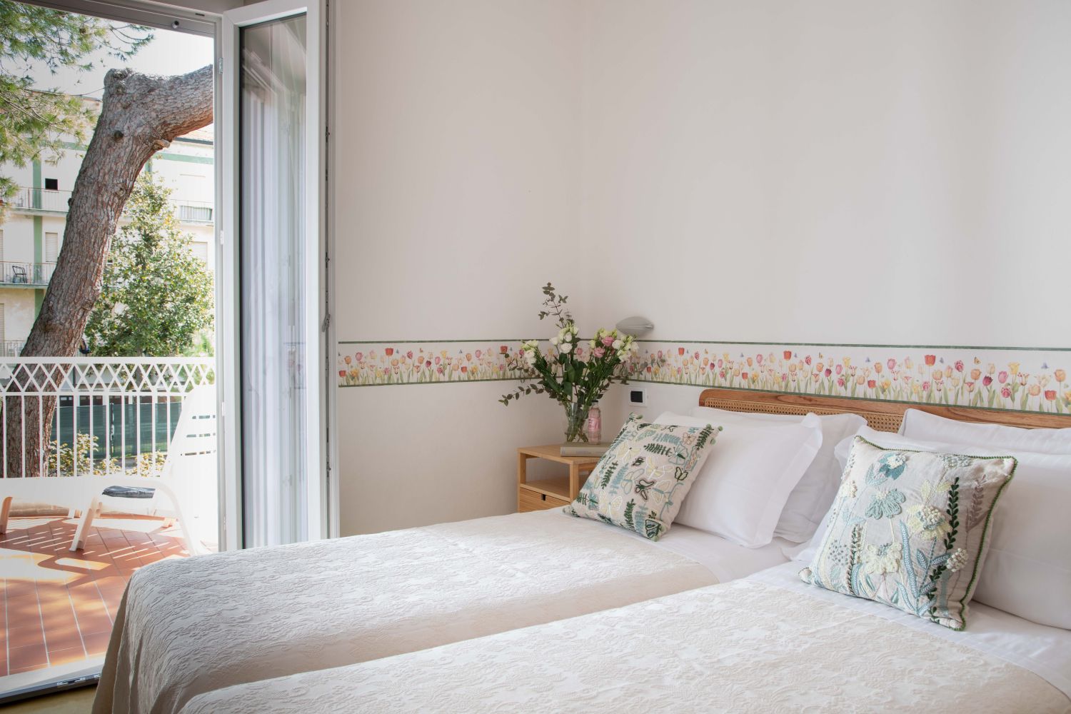 Garden View Family Rooms: The garden view family rooms consist of two communicating rooms, ideal for enhancing the comfort and privacy of the entire family. With two terraces and a shared bathroom, this solution offers a welcoming and spacious atmosphere, like a mini-apartment.