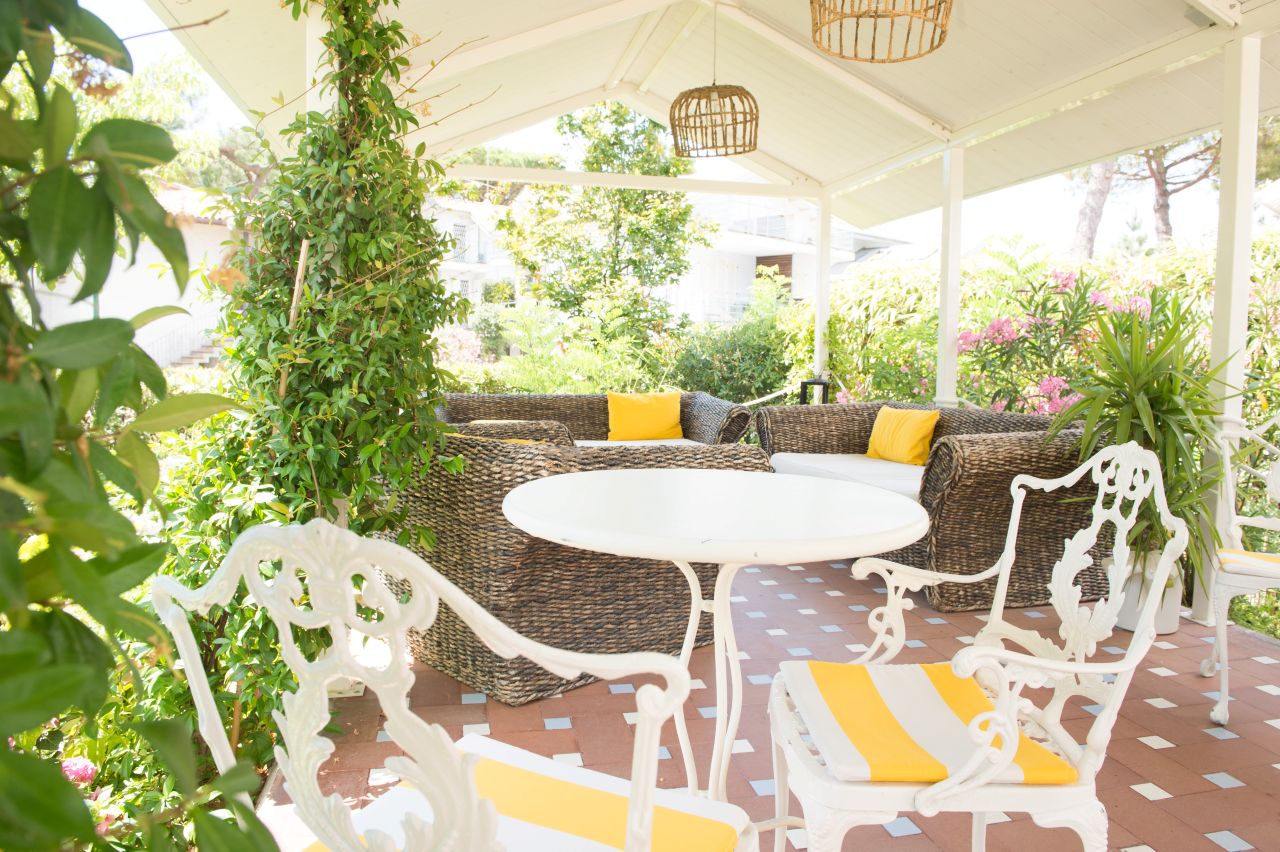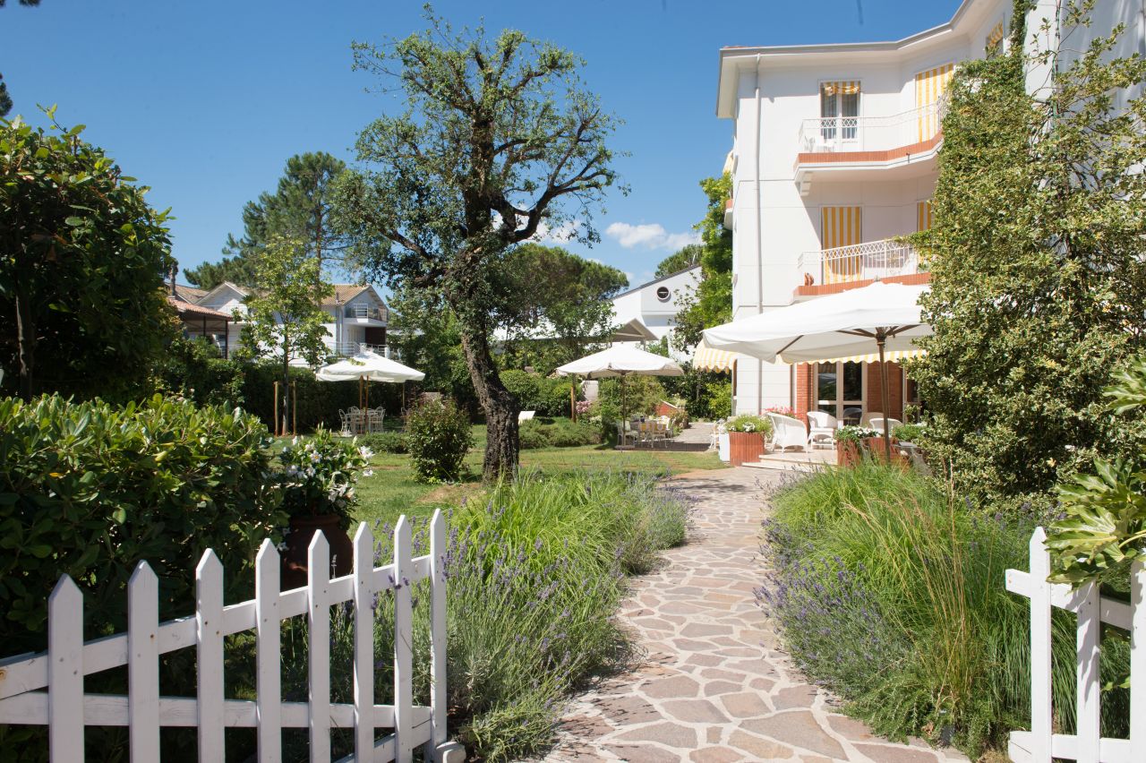 Villa Arizona is a charming Bed & Breakfast located in Milano Marittima, a 1950s residence that preserves its romantic charm, recently renovated to offer maximum comfort to families, tourists, and professionals from around the world. This small oasis of tranquility and familial warmth offers a variety of spaces designed to meet every need, including a meticulously maintained garden, a gazebo with an outdoor lounge, a playroom for the little ones, a welcoming hall, and a reading room for moments of relaxation and privacy. The rooms at Villa Arizona are spacious, bright, and tastefully furnished, ideal for ensuring a pleasant and relaxing stay. Every morning, guests can enjoy a rich breakfast served until late morning, which becomes a true moment of pleasure. The buffet, prepared with care and passion, includes a selection of fresh fruit, marmalades, yogurt, cereals, cold cuts, and homemade cakes, prepared "just like in the old days" by the house pastry chef. Every element of the breakfast is a symphony of quality and tradition, designed to pamper each guest. Breakfast in the garden at Villa Arizona is a true experience: a corner of bucolic grace, where time seems to stand still. A perfect spot to enjoy the peace and beauty of the place, away from the daily stress. With an experienced and attentive staff, Villa Arizona is the ideal starting point to explore Milano Marittima and enjoy a stay that combines the comfort of home with the beauty of tradition.