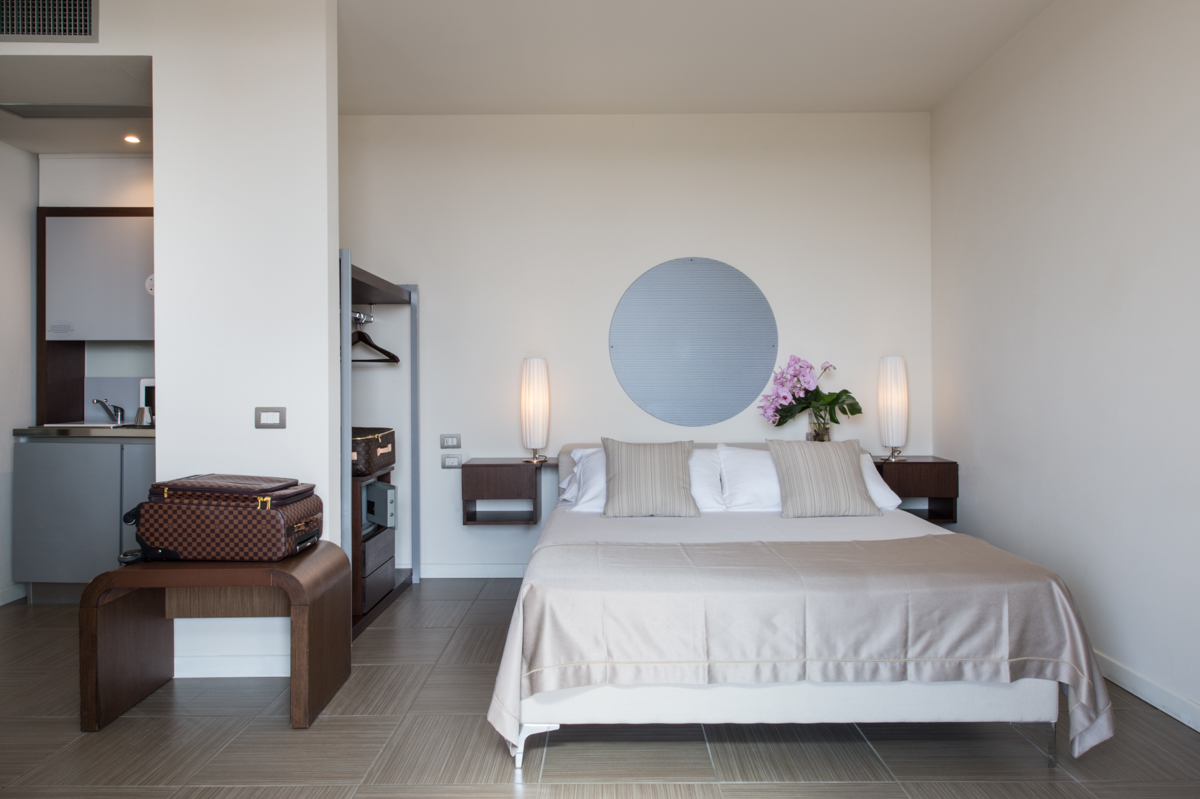 Tutte le camere sono dotate di arredi moderni e TV a schermo piatto con canali satellitari. Le suite sono inoltre dotate di ampi balconi e la suite presidenziale offre un lusso assoluto, con vasche idromassaggio interne ed esterne e un'enorme terrazza con vista sul mare. Ogni camera e suite dispone di un angolo cottura, utilizzabile gratuitamente per riscaldare i pasti dei neonati.