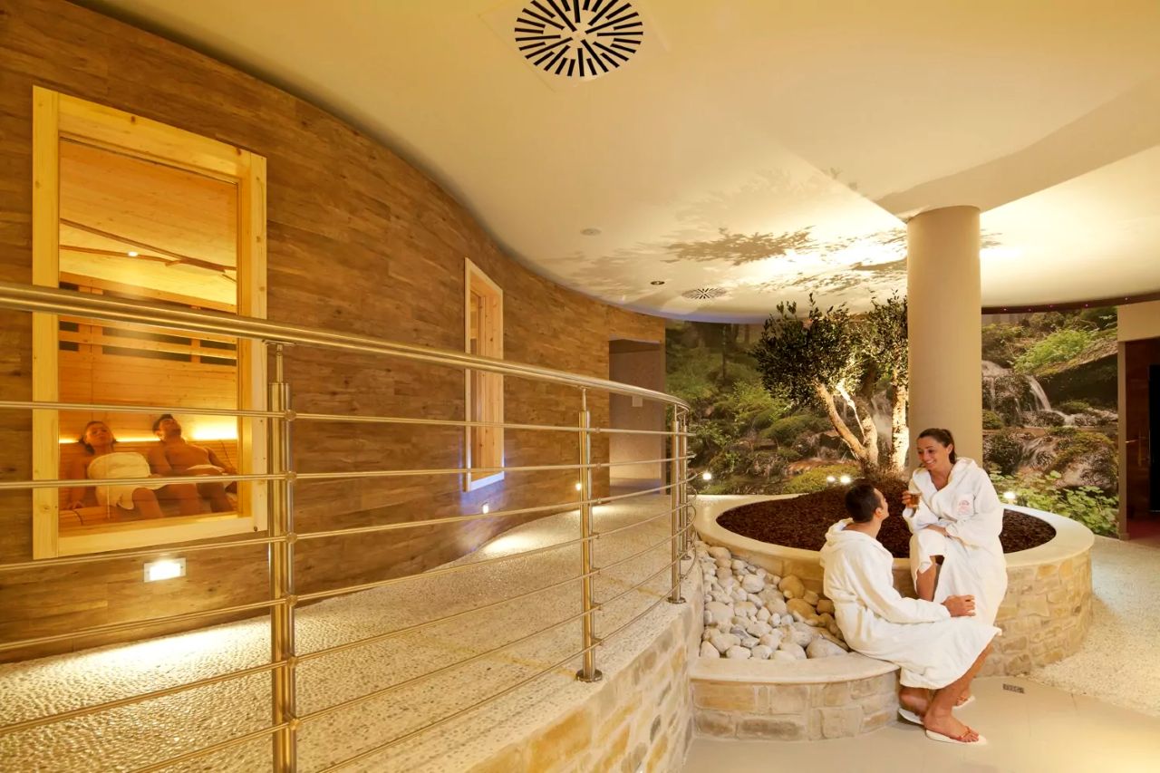 Gli ospiti possono rigenerarsi in un regno di piscine e saune pensate per garantire il massimo relax: piscina panoramica riscaldata, aemotio SPA con cromoterapia, bagno salino, vasche per trattamenti, bagno di vapore, Vitarium, sauna della natura, cristalli di neve, aree relax e zona fitness panoramica.