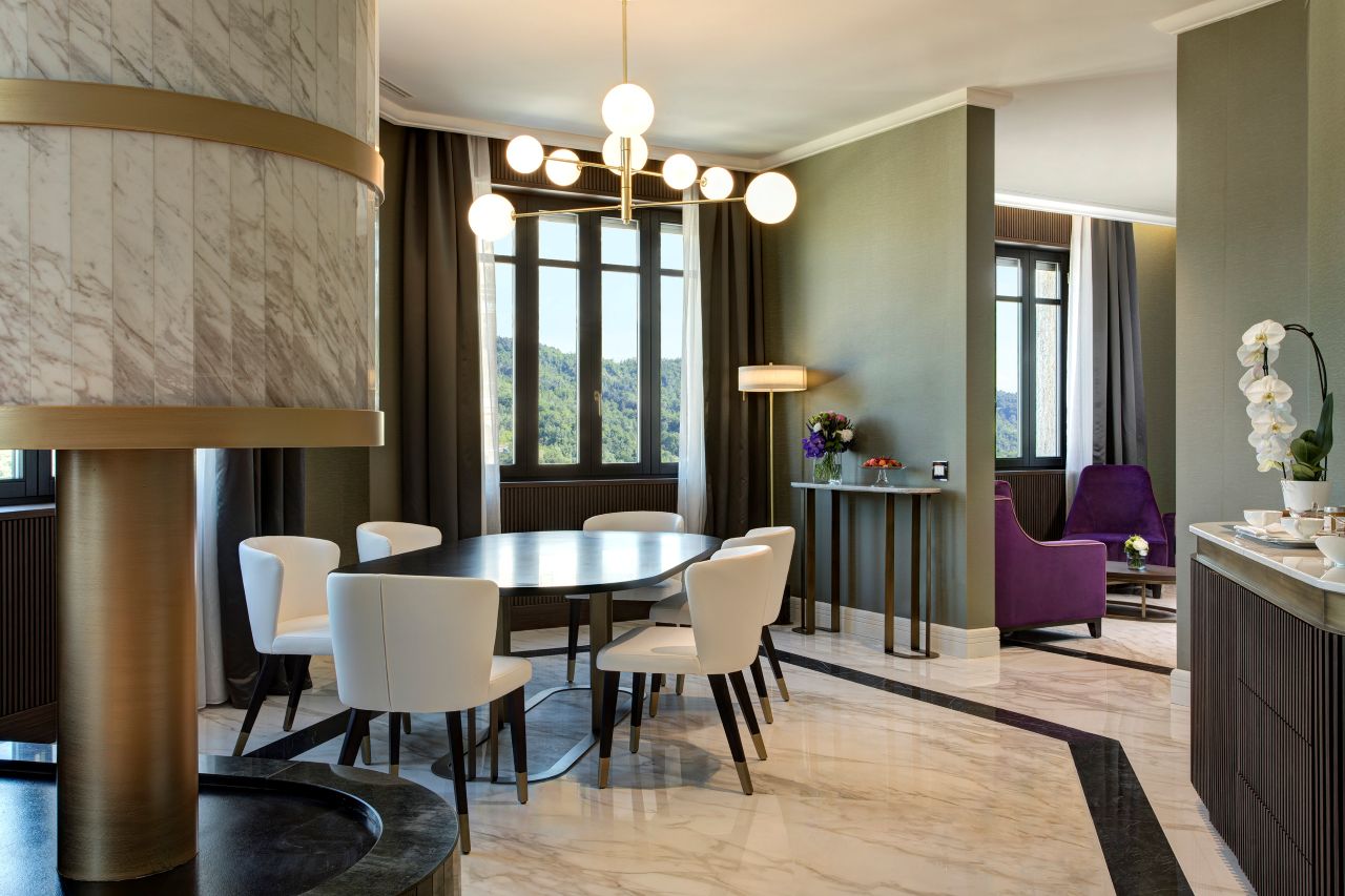 Suite: 75 mq, composta da camera da letto, zona living e bagno privato, dotata di Smart tv e domotica, pavimento parquet e materassi Memory Foam. Ideata per consentire agli ospiti di godere di momenti di intenso benessere in un ambiente in cui passato e futuro si fondono, creando un’atmosfera davvero unica. Qui, il piacere della privacy si unisce a arredi raffinati e a innovativi servizi di domotica per garantire comfort ed entertainment senza pari.