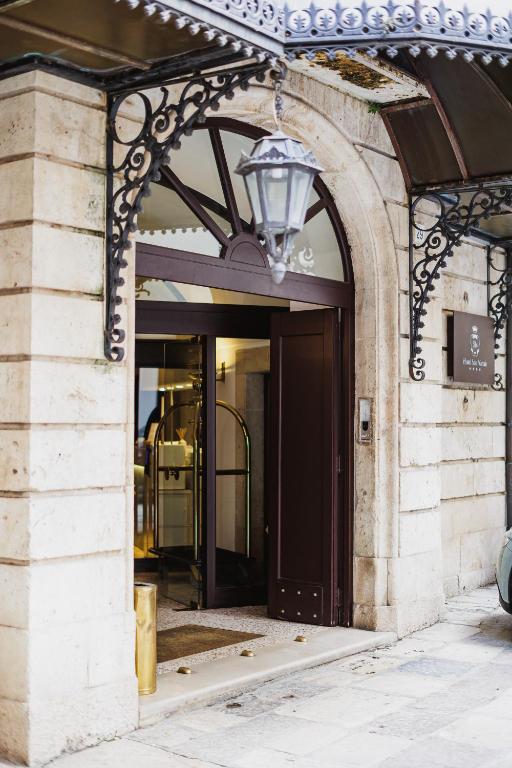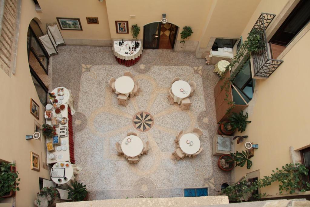 Palazzo nobiliare ristrutturato, sulla facciata principale espone ancora oggi lo stemma del casato, e sulle volte delle stanze sono stati restaurati gli affreschi degli stemmi delle antiche famiglie nobiliari che si sono succedute. La scalinata è impreziosita da un reperto in pietra raffigurante San Nicola da cui l’Hotel prende il nome.