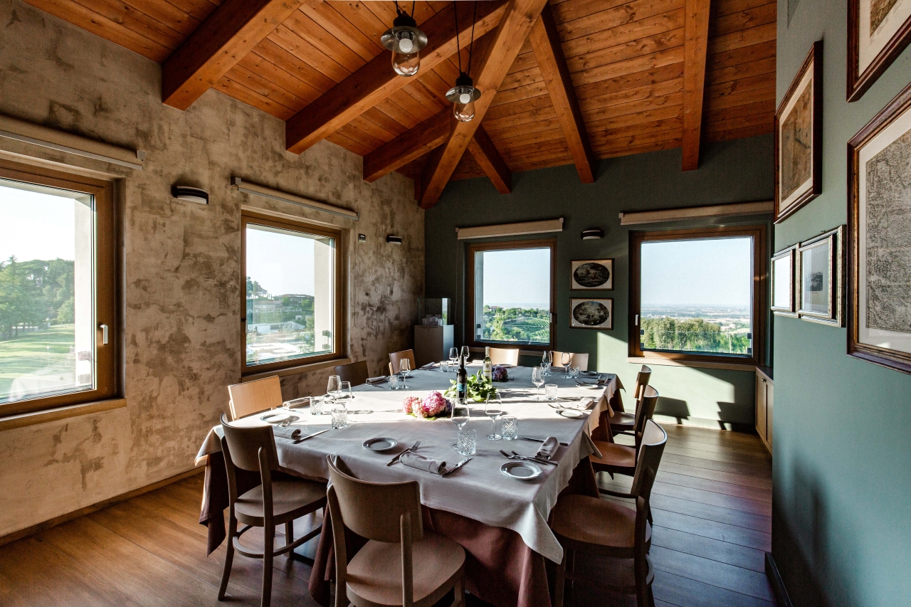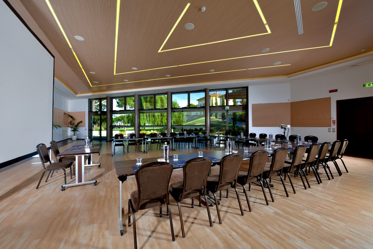 Dalle cantine storiche della Villa si accede a un elegante spazio foyer che porta al centro congressi: 300 m², con luce naturale e ampie finestre con tende oscuranti