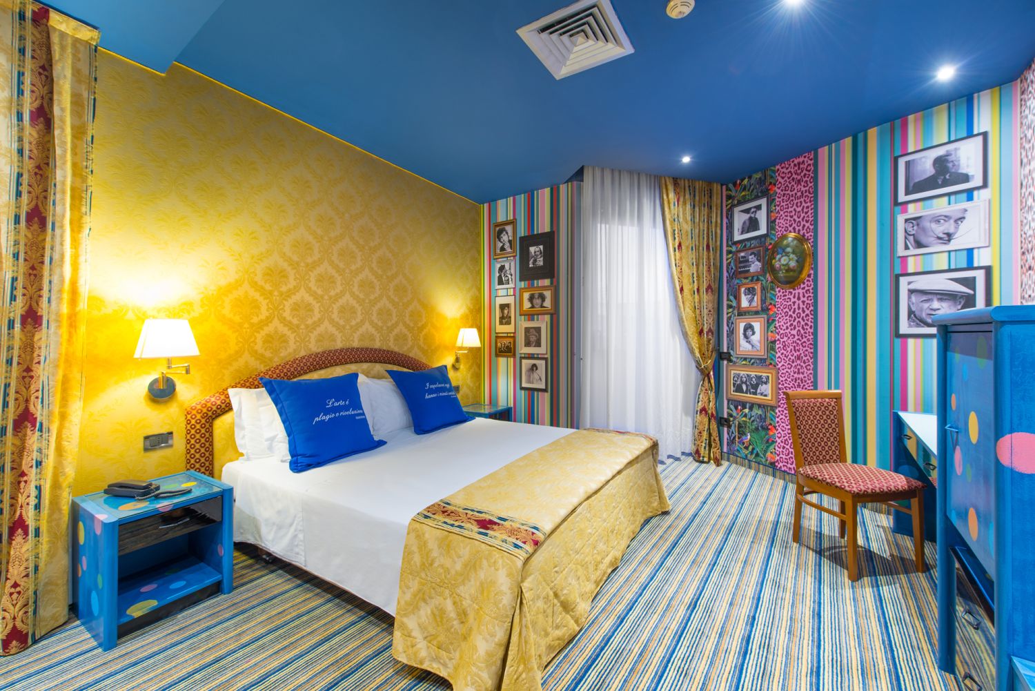 Das Admiral Art Hotel ist das Ergebnis des umfangreichen Restyling-Projekts, das bereits einen großen Teil des Hotels betroffen hat Struktur. Eine tiefgreifende Neuentwicklung im Namen zeitgenössischer Kunst und Design, mit großem Augenmerk auf die Rückgewinnung von Materialien, Wiederverwendung, Recycling, Abfallfreiheit und Nachhaltigkeit. An den Türen und entlang der Flure finden sich Farbkombinationen, Designs und Grafiken, die durch Reproduktionen seiner berühmtesten Bilder, die die prestigeträchtigen Marken Dior und Chanel berühmt machten, eine Hommage an den raffinierten Illustrator der Couture der 1950er Jahre, René Gruau, darstellen. Die Route führt weiter über die Treppen, inspiriert von europäischen Stadtlandschaften und der Pop-Rock-Kultur, mit Blow-ups und Street-Art-Werken, wie sie beispielsweise der Barcelona-Autor El Pez vor Ort geschaffen hat. Im ersten Stock treffen Design, Kunst, Musik sowie Essen und Wein im neuen Cage Club aufeinander, dem „Dschungel“, der aus der Kreativität des Architekten Tausani Ferrini entstanden ist, der an die üppige Natur eines äquatorialen Waldes erinnern wollte. Den überraschenden „Dschungel“ umrahmt die große und helle Terrasse, von der aus Sie zum Frühstück zwischen Olivenbäumen und duftenden Zitrusfrüchten die Adria sehen können. Restaurant mit Tischservice und kleiner Speisekarte, Vorspeisen, täglich Fisch, hauseigene Konditorei, spezielles Menü für Kinder. Jede Woche traditionelles romagnolisches Abendessen, Aperitif auf der Panoramaveranda, Unterhaltung und Live-Musik. Bar, Lounge, Aufzüge, Garage mit Videoüberwachung und angeschlossener Parkplatz (gegen Gebühr). Kostenloses WLAN in den Zimmern und öffentlichen Bereichen. Am Strand: Fitnessstudio, Basketballplätze, Beachvolleyball, Tischtennis, Spielplatz mit Hüpfburgen, Unterhaltung und Miniclub.
