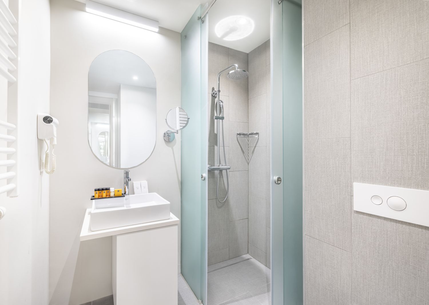 Classic Doppelzimmer mit Balkon: Doppelbett, Zustellbett (Ausziehbett), Badezimmer mit Dusche.