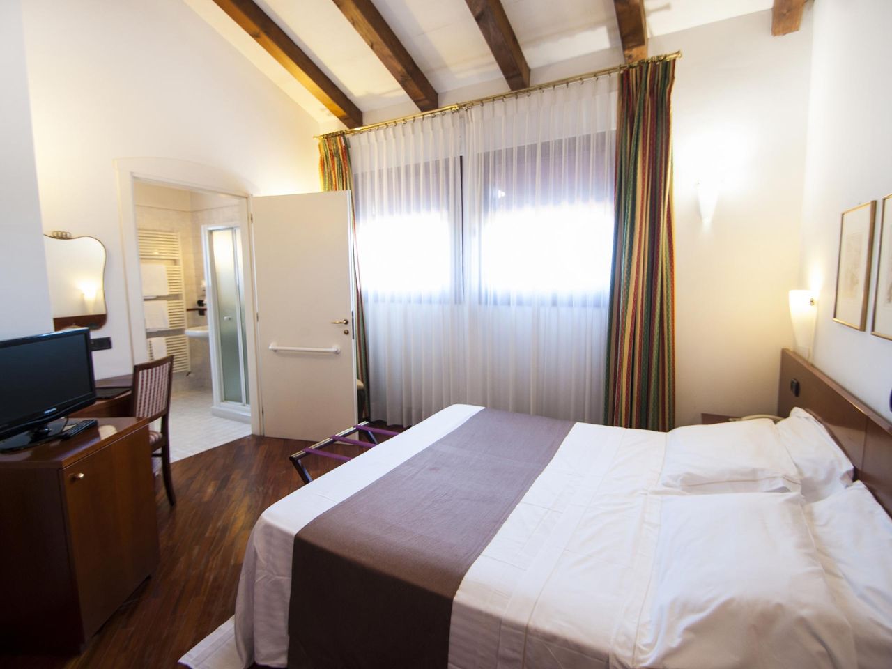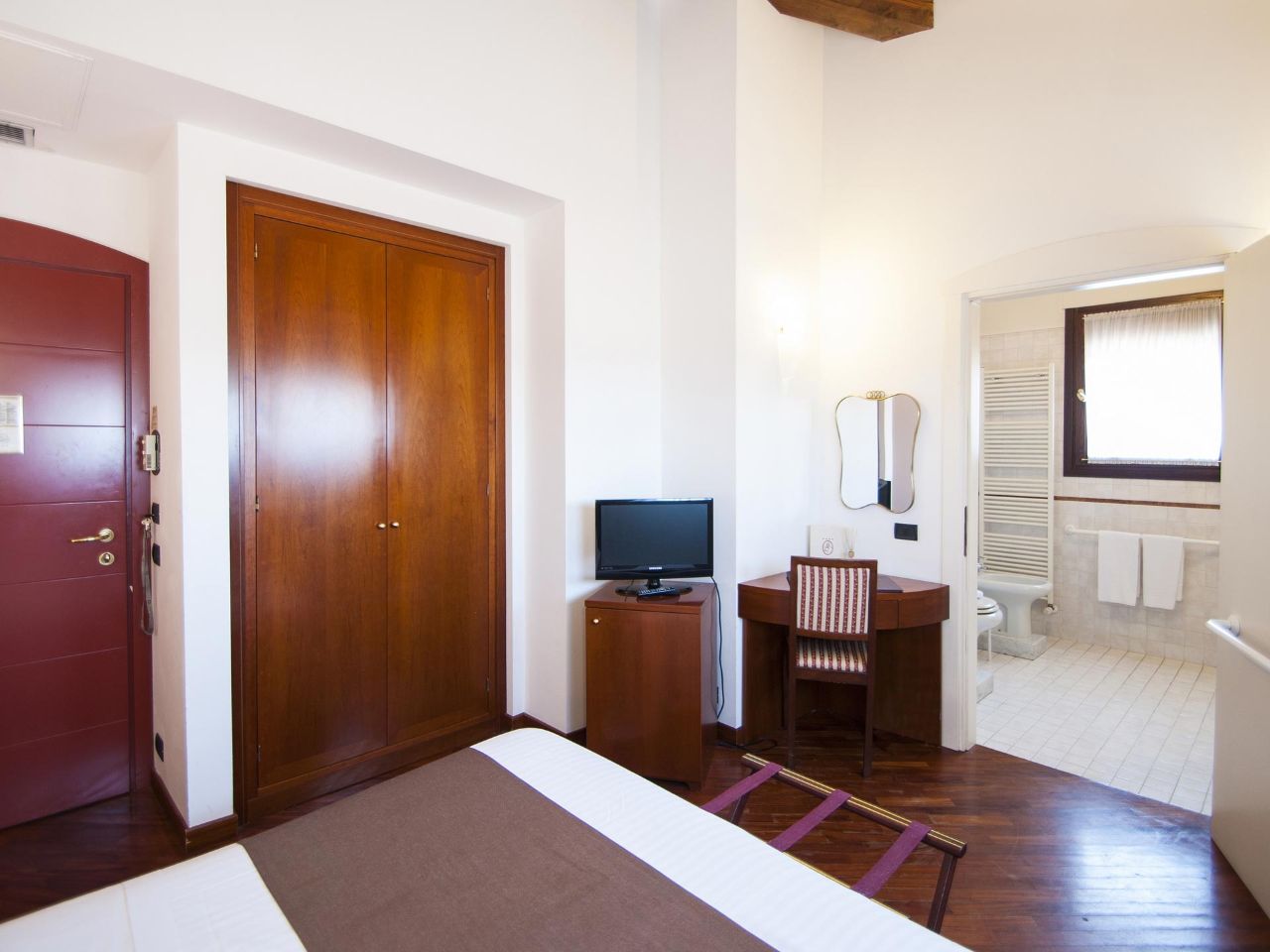 55 rooms in total, all spacious and comfortable, each one different from the others in the elegant original furnishings and precious tapestries. The top floor rooms enjoy a view of the surrounding Emilian countryside, with Bologna in the distance. Some have wood-beamed ceilings.